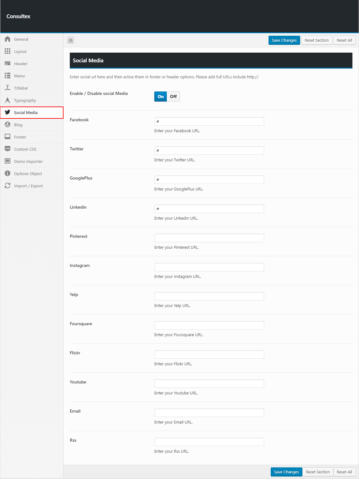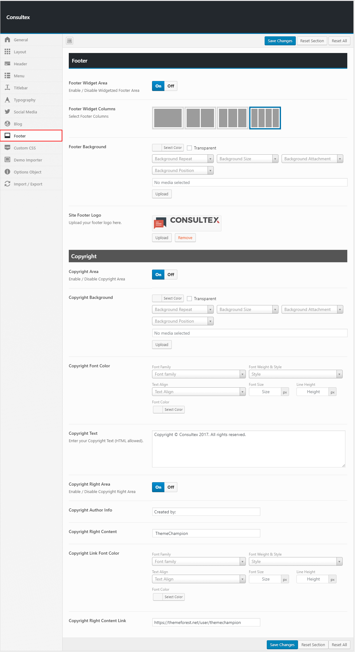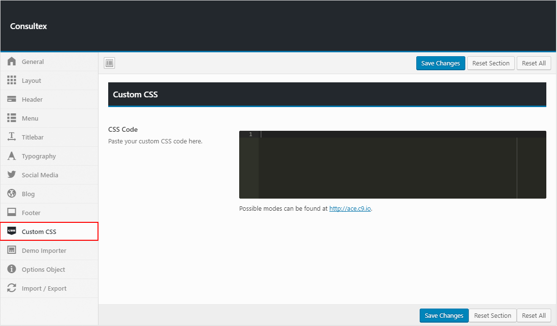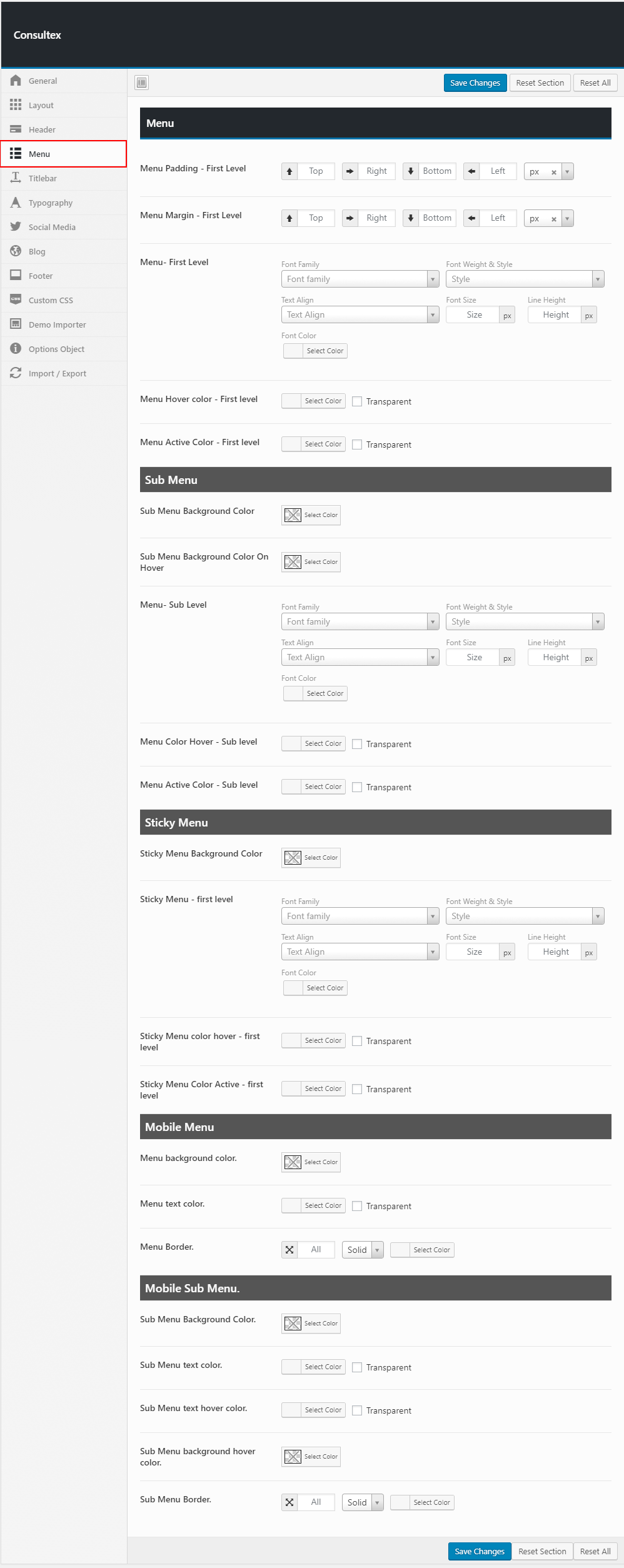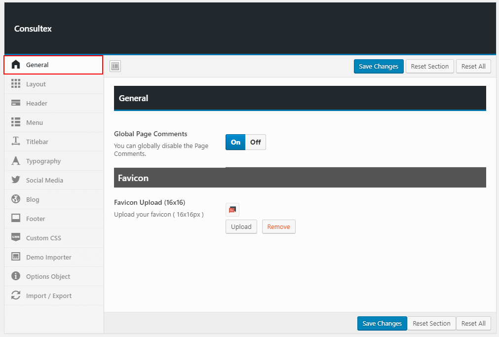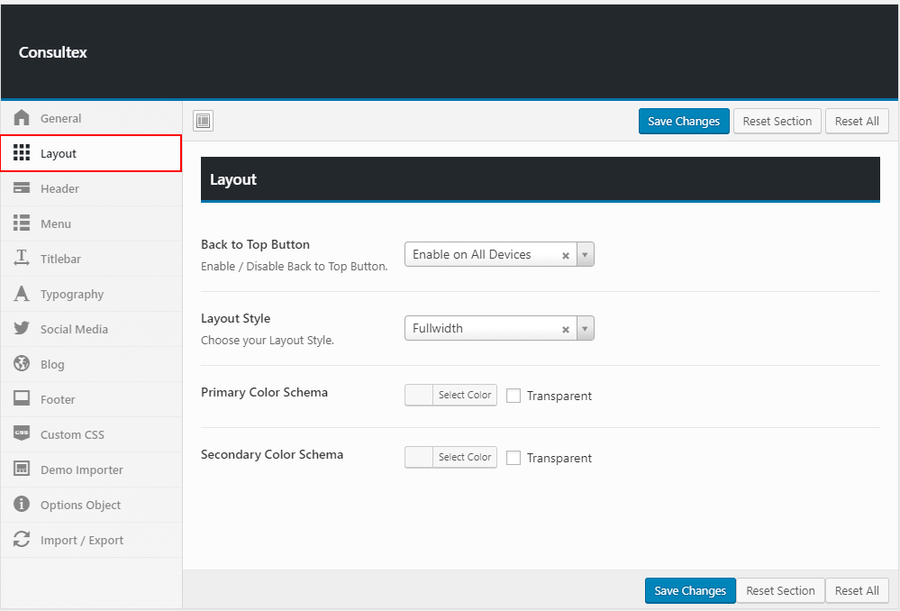 Theme options is a custom admin page to all of the theme's extensive configuration options. It allows users to change theme settings without modifying theme files or touching any code. To view the panel, navigate to the Theme Options in the left-hand menu. Here you have the ability to alter many core aspects that make up how your theme looks and behaves.