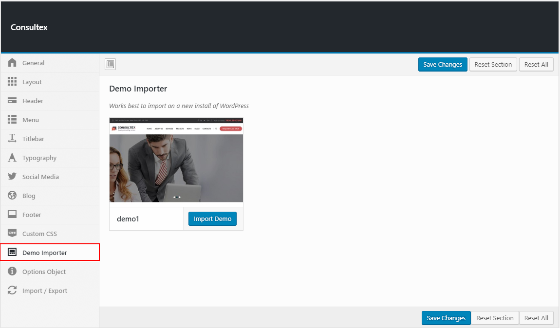 Video tutorial: Upload & Install Theme, install and active required/recommended plugins, import demo data with single click : https://www.youtube.com/watch?v=NtStwaoNUYc