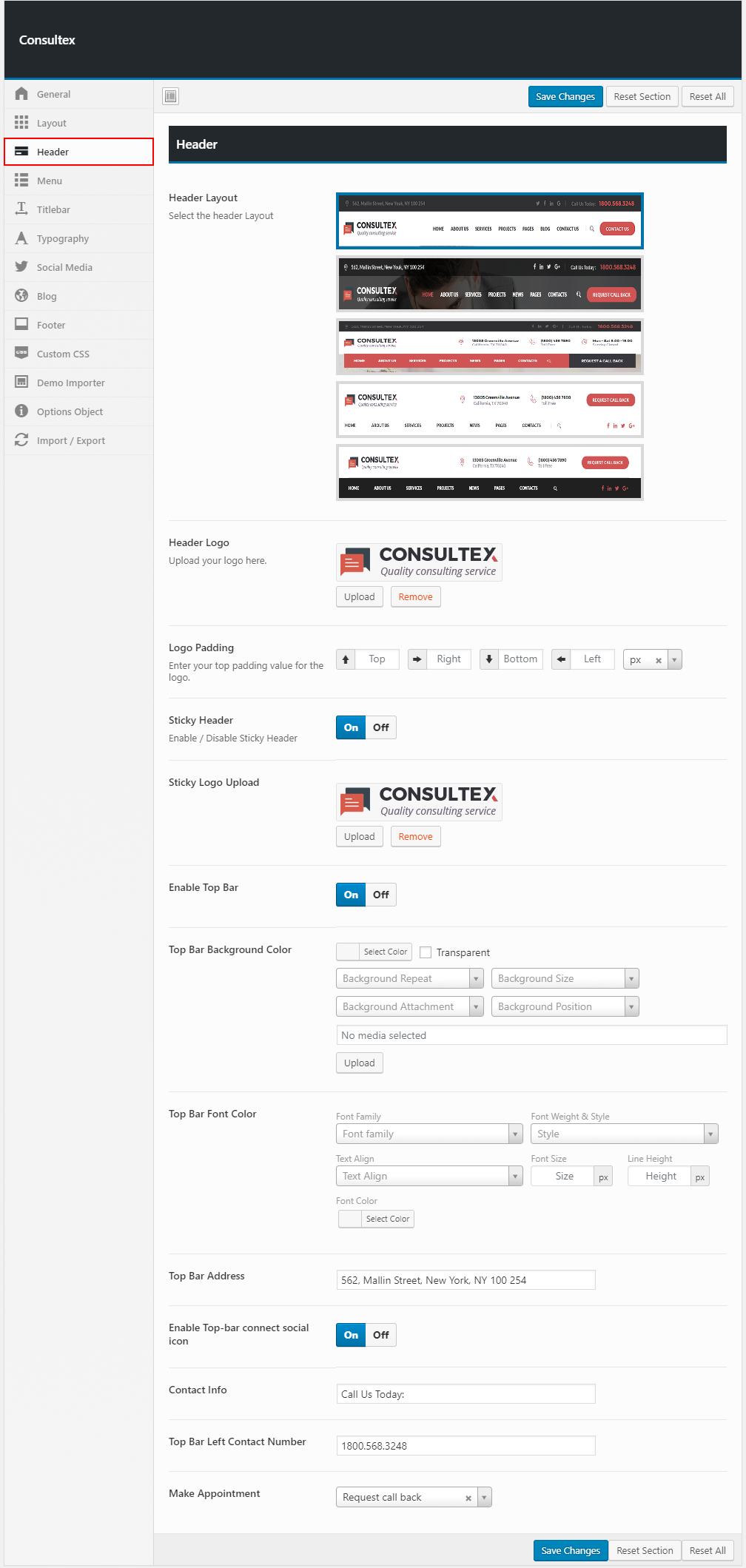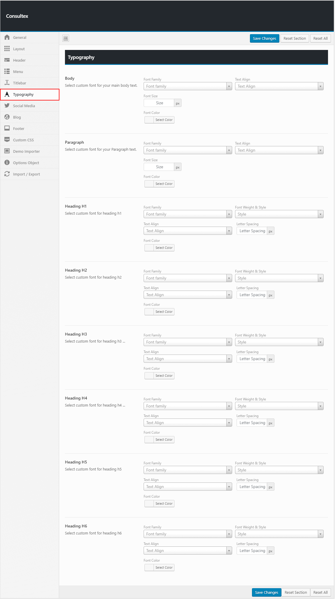 The theme option allow you to select from 500+ google fonts, You also can change font color, size, align etc..