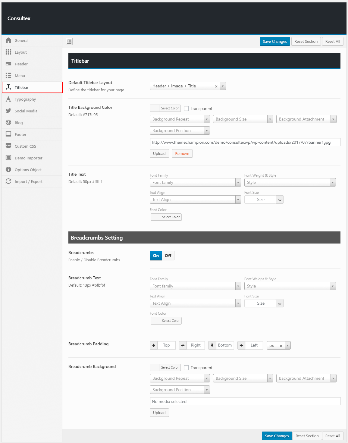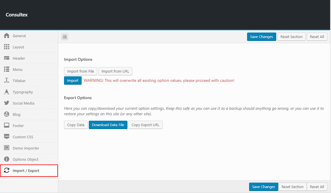 To Import / Export the themeoption settings