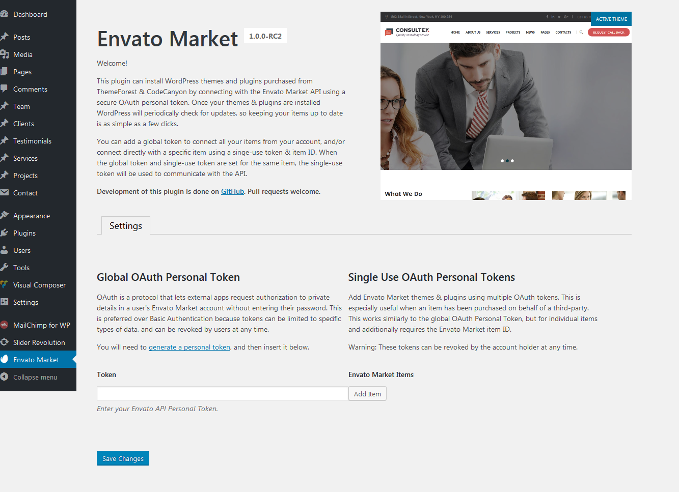 Step 2: Upload your downloaded 'consultex' theme file, and then click on Install Now