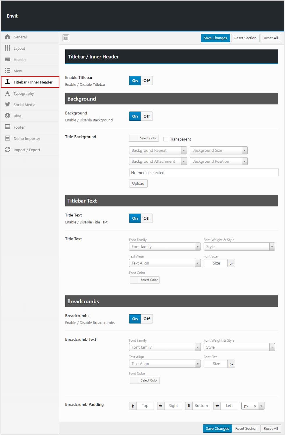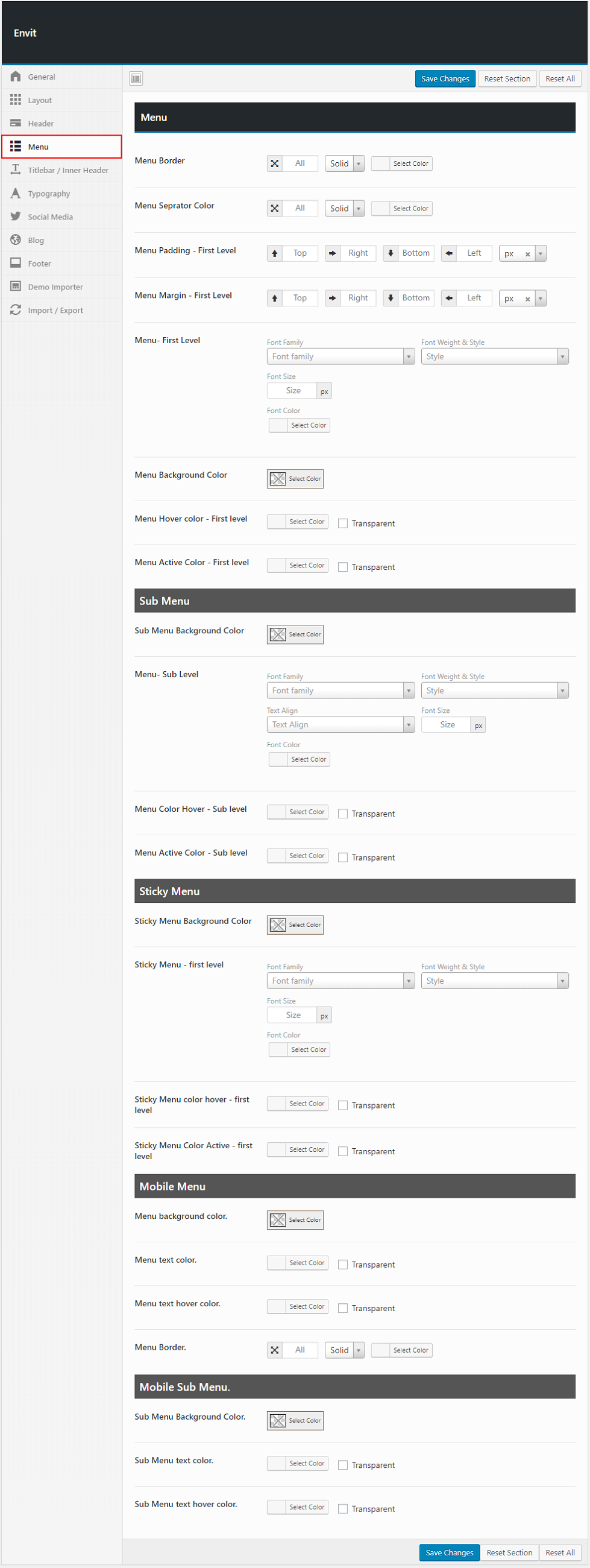 Theme options is a custom admin page to all of the theme's extensive configuration options. It allows users to change theme settings without modifying theme files or touching any code. To view the panel, navigate to the Theme Options in the left-hand menu. Here you have the ability to alter many core aspects that make up how your theme looks and behaves.