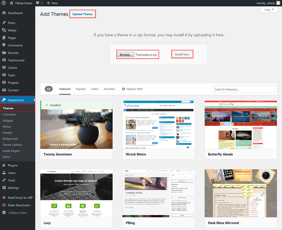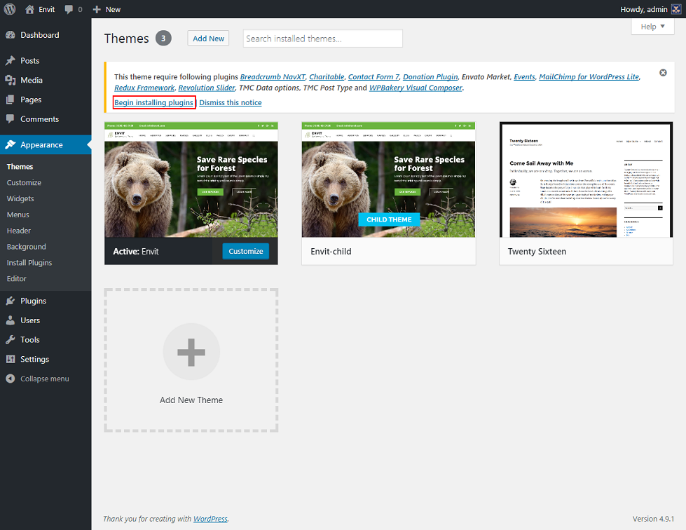 Step 2: Upload your downloaded 'envit' theme file, and then click on Install Now