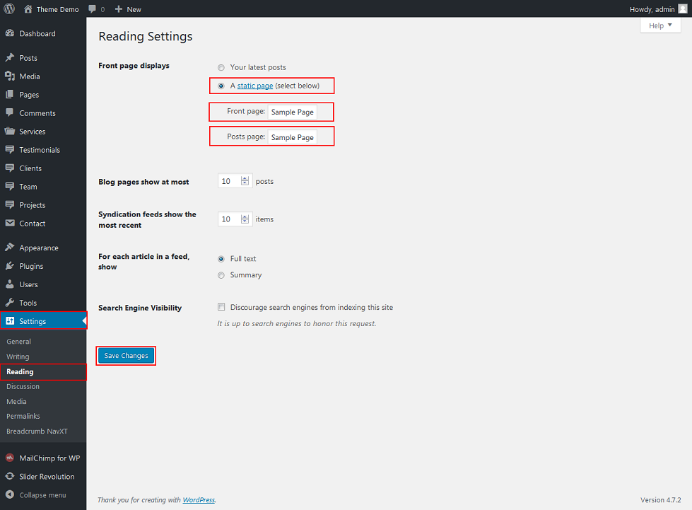 tep 1: Go to Settings > Reading and select which page you would like for your font-page and blog page