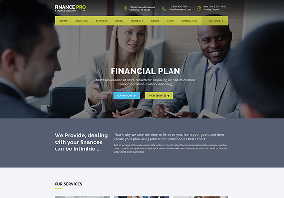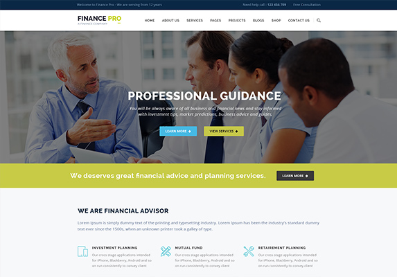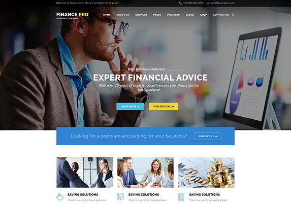 Finance Pro is a clean and Modern WordPress Theme. It is best suited for corporate website like Financial Adviser, Accountant, Consulting Firms, insurance, loan, tax help, Investment firm etc. This is a business theme that is helpful for online presence for Corporate Business and Financial Firms.